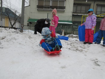 園長先生が作ってくれた、白梅そり山!